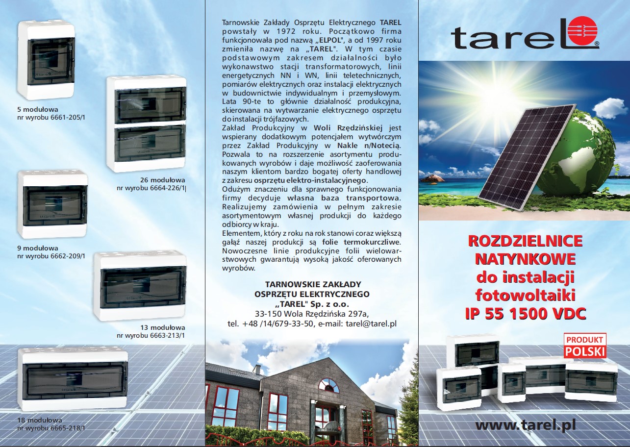 Tarnowskie Zakłady Osprzętu Elektrycznego TAREL powstały w 1972 roku. Początkowo firma funkcjonowała pod nazwą „ELPOL”, a od 1997 roku zmieniła nazwę na „TAREL”. W tym czasie podstawowym zakresem działalności było wykonawstwo stacji transformatorowych, linii energetycznych NN i WN, linii teletechnicznych, pomiarów elektrycznych oraz instalacji elektrycznych w budownictwie indywidualnym i przemysłowym. Lata 90 - te to głównie działalność produkcyjna, skierowana na wytwarzanie elektrycznego osprzętu do instalacji trójfazowych.